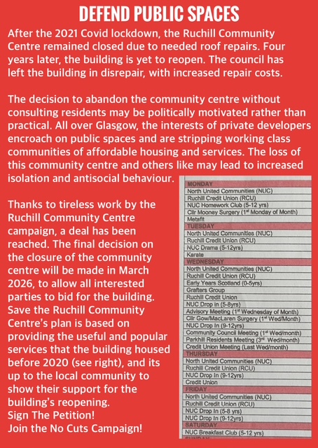 The Ruchill Community Centre will be discussed in the City Chambres on Thursday 22nd May, 2025 at 10am. Anyone who would like to listen in please visit this link